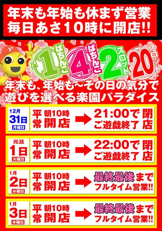 年末年始もスタッフ一同がんばります。